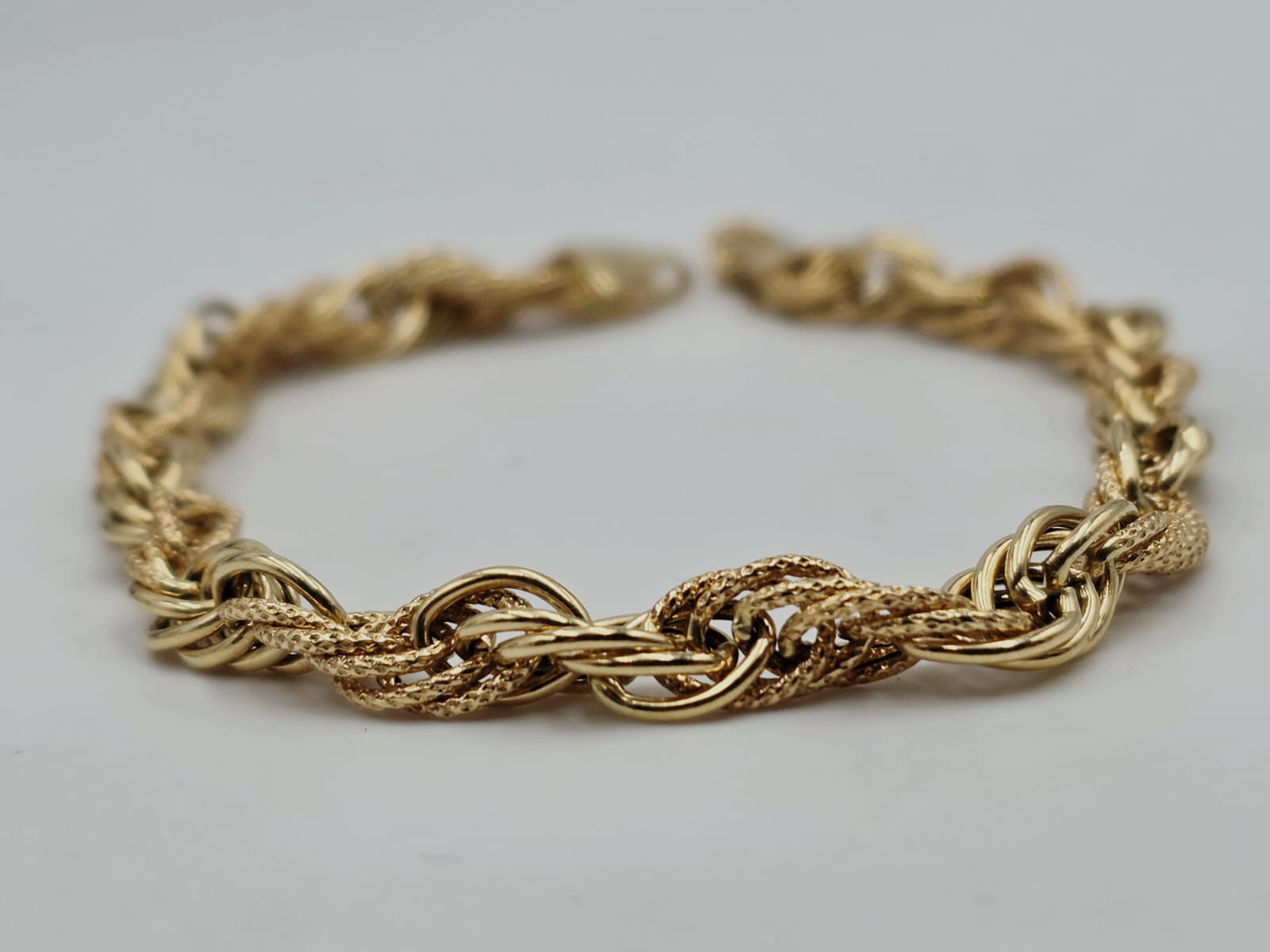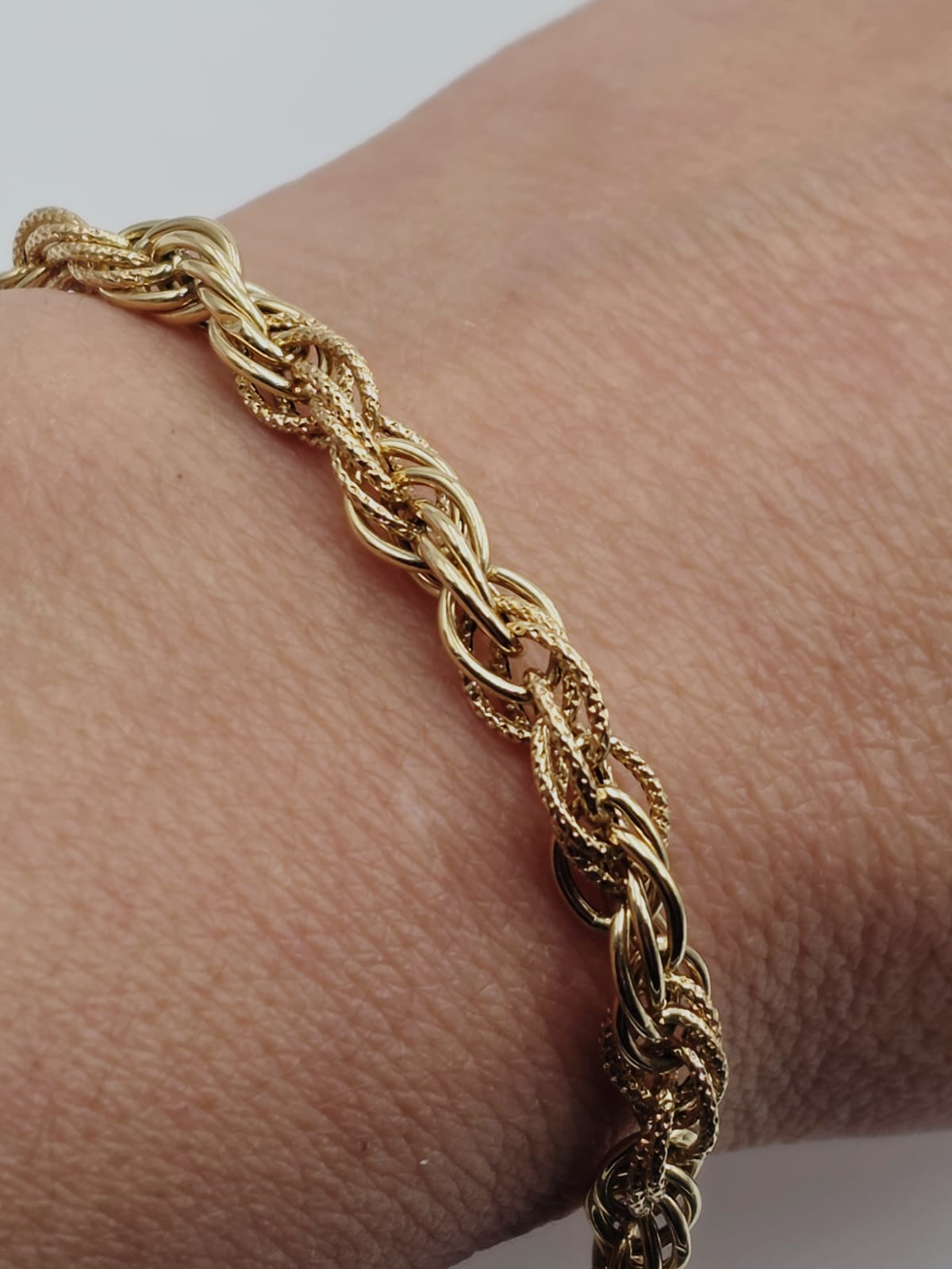 Bellissimo bracciale in oro giallo massiccio 18 carati con maglia rolò ad anelli