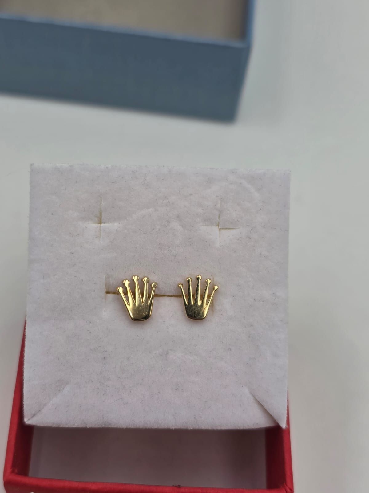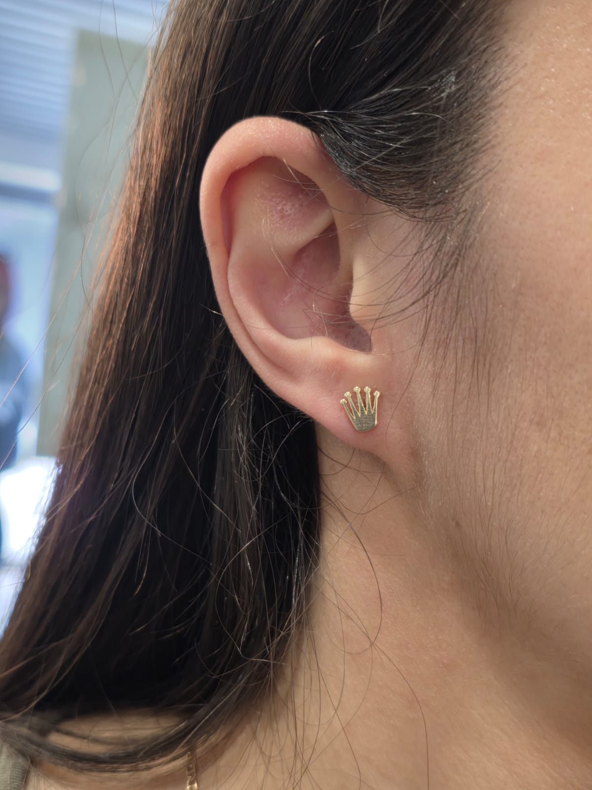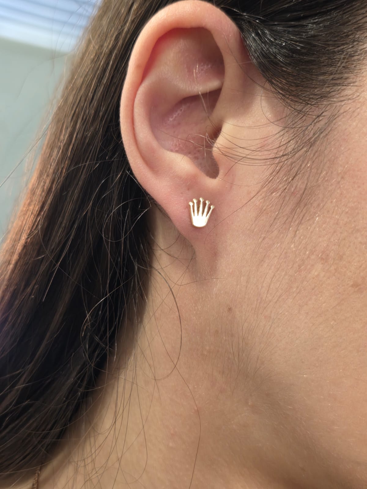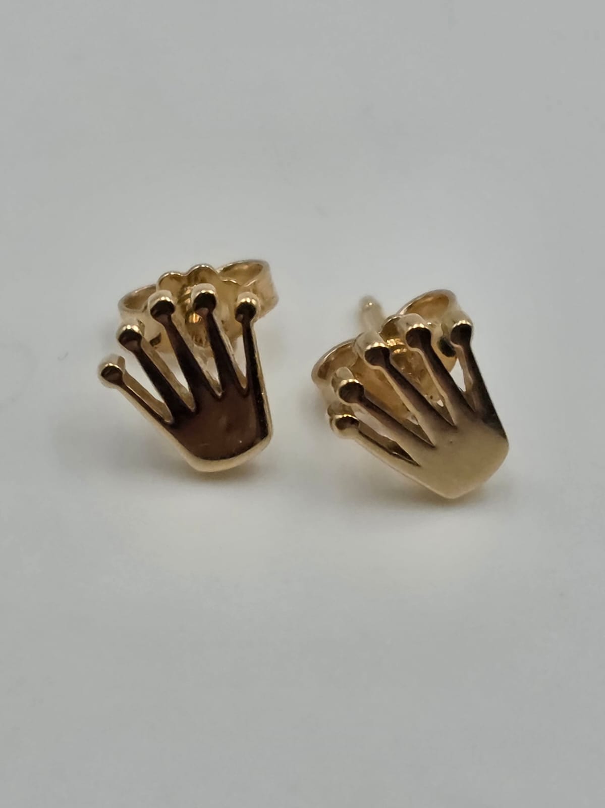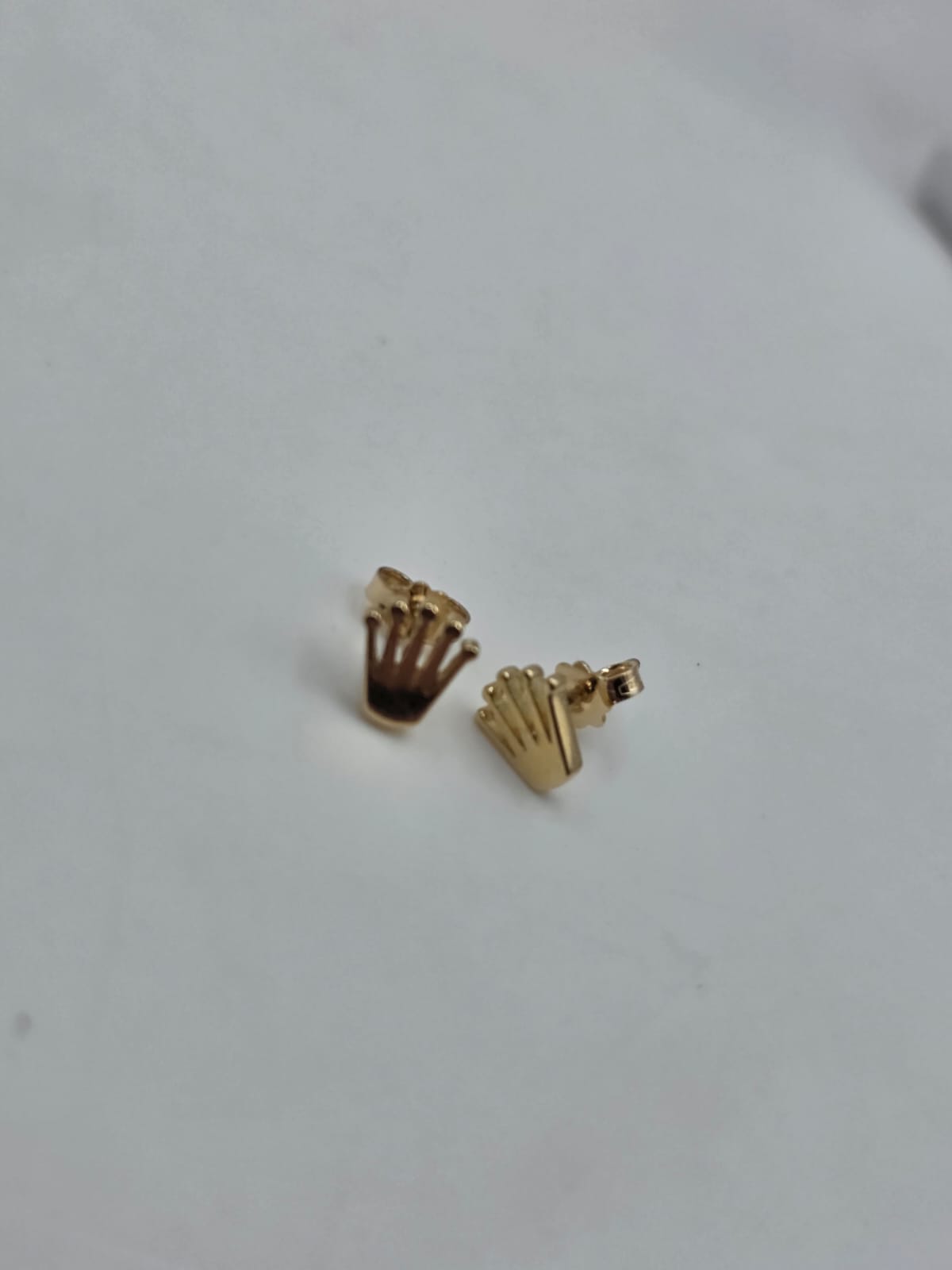 Bellissimi orecchini a lobo in oro giallo massiccio 18 carati con chiusura a farfallina e a forma della tipica coroncina del brand Rolex.