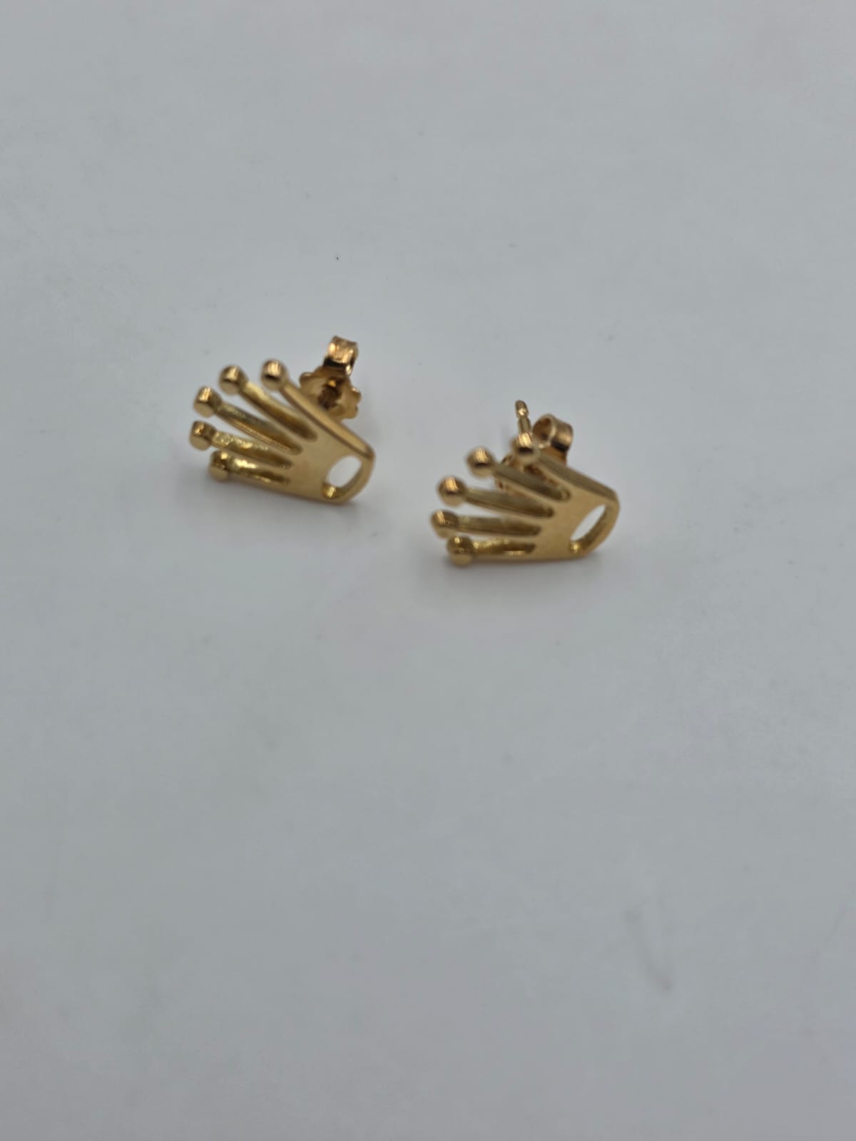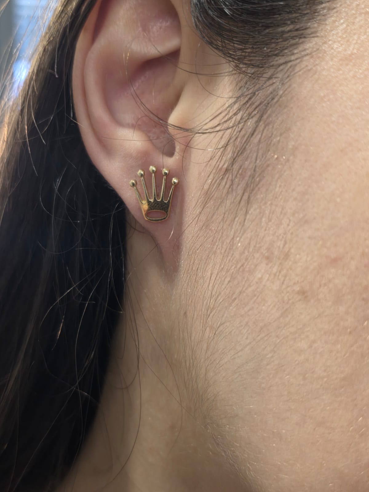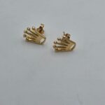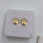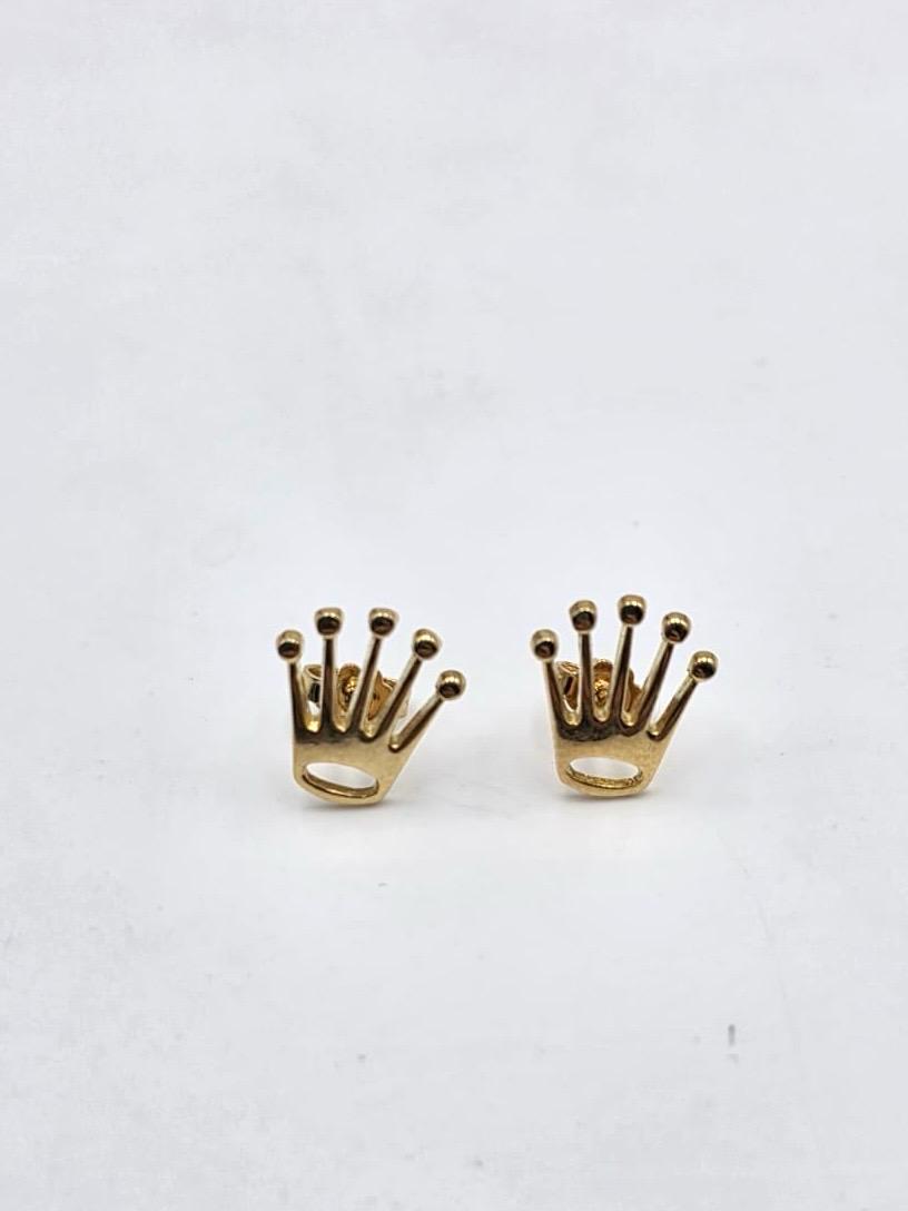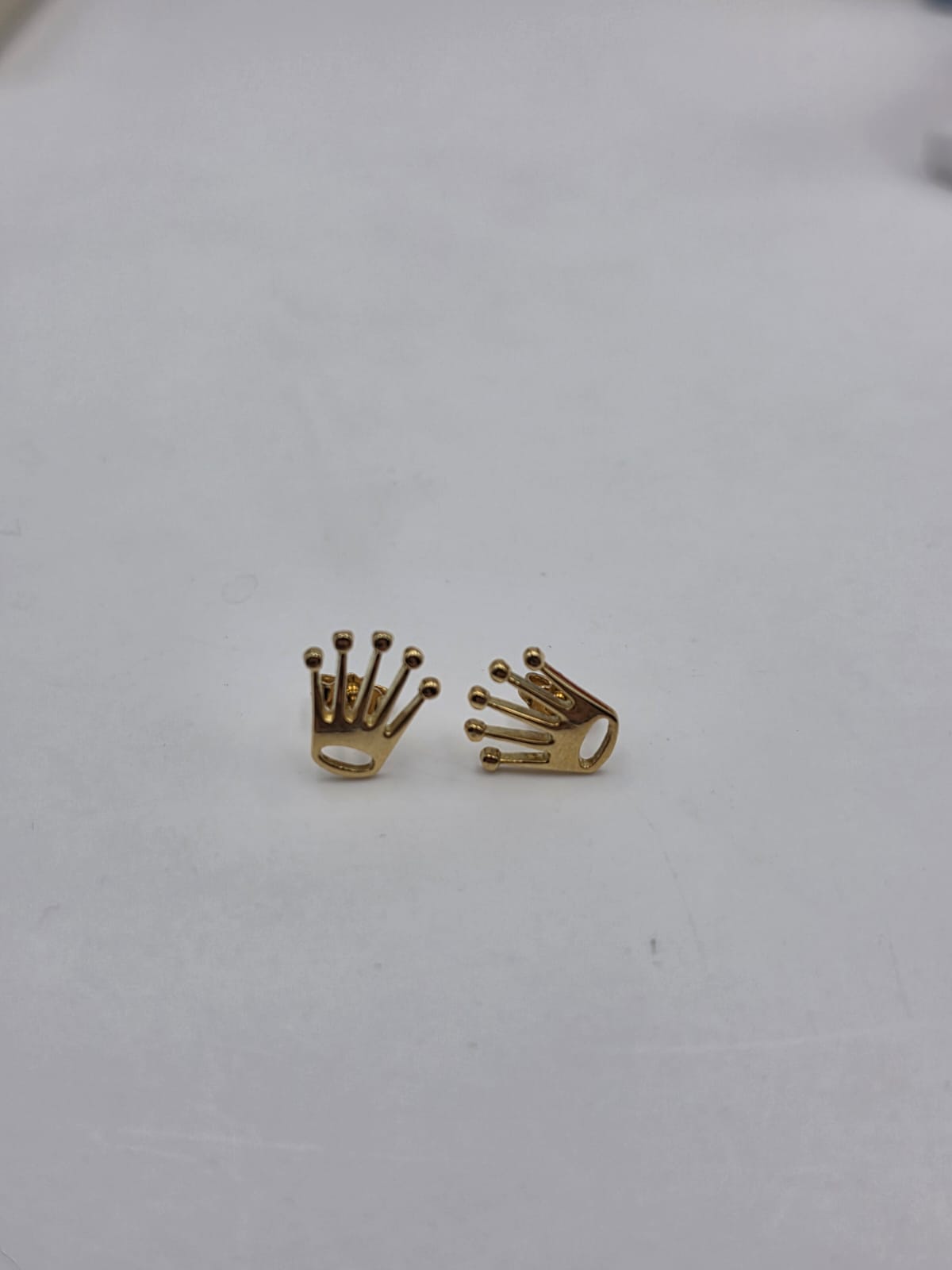 Bellissimi orecchini in oro giallo massiccio 18 carati in stile Rolex a coroncina del brand.