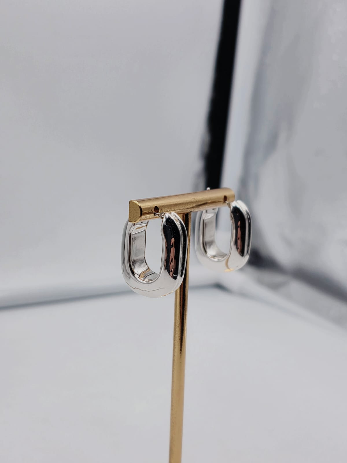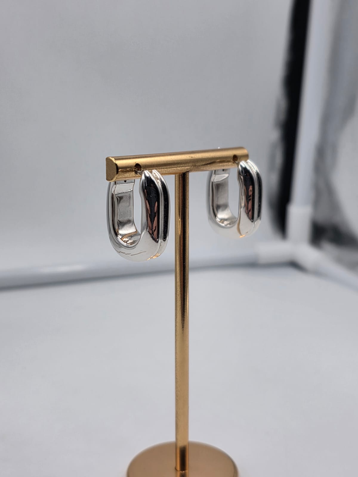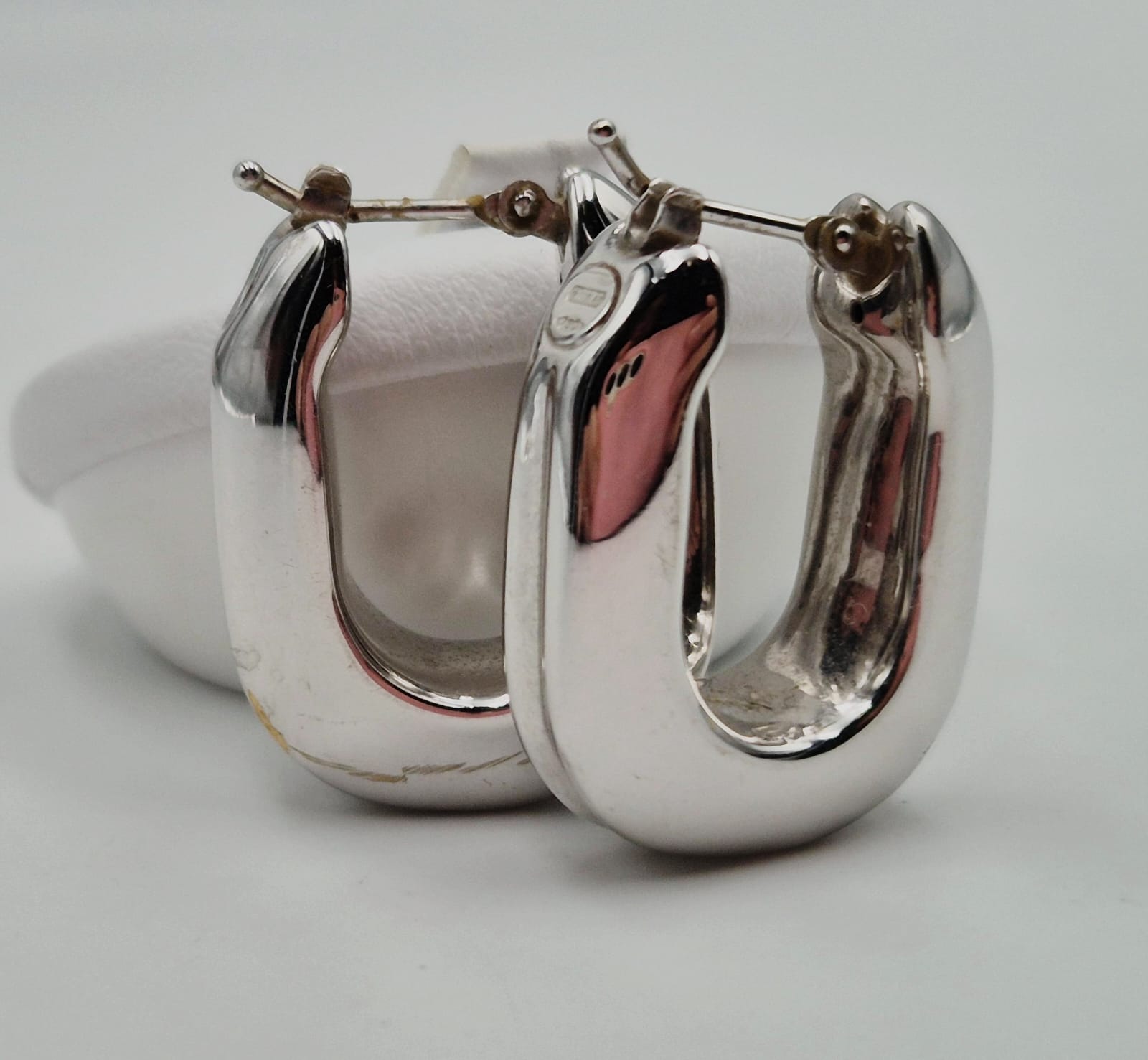 Bellissimi orecchini forma rettangolare realizzati in oro massiccio bianco 18 carati